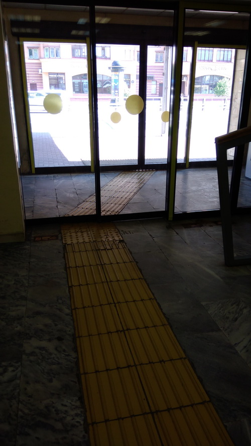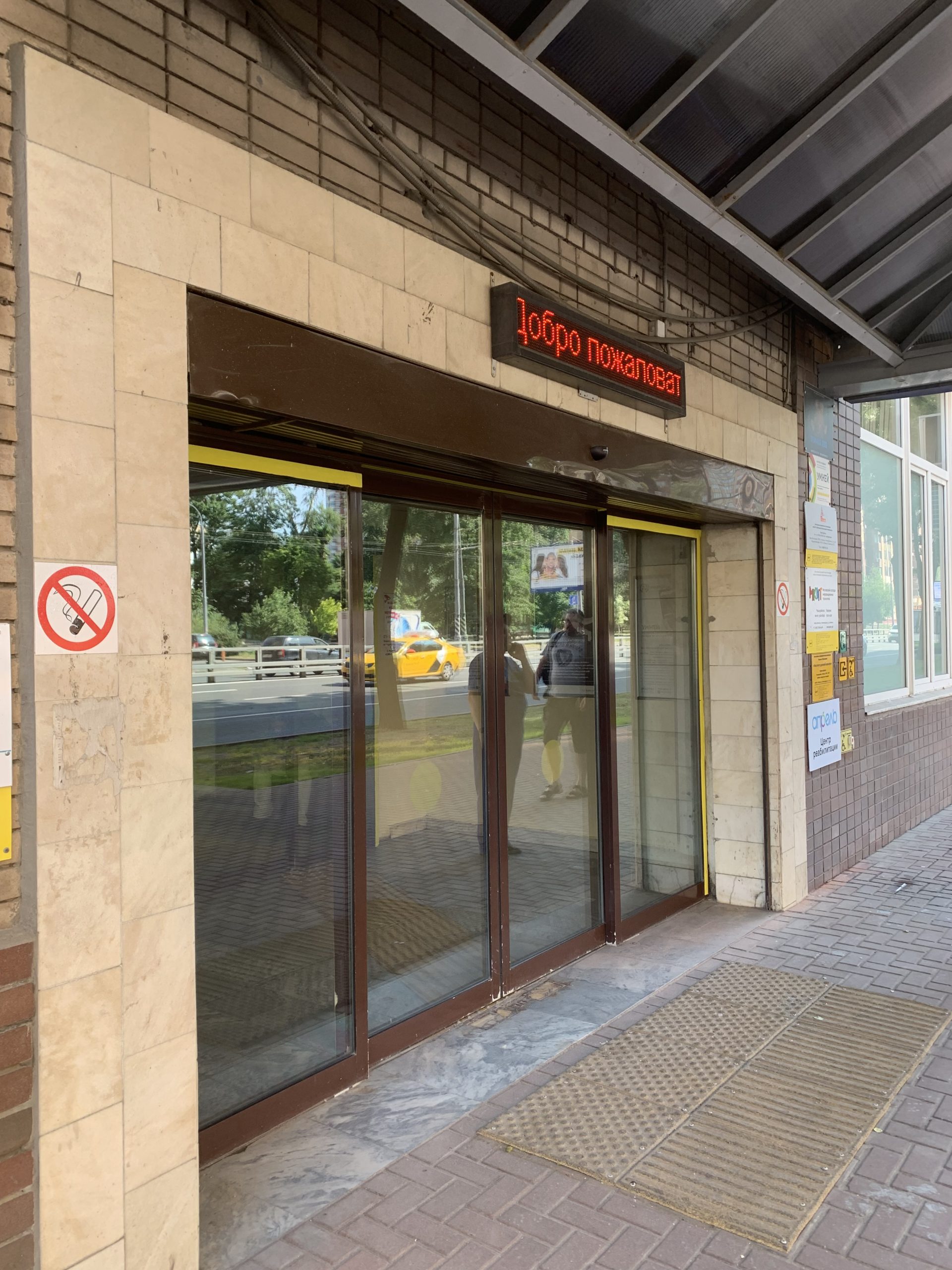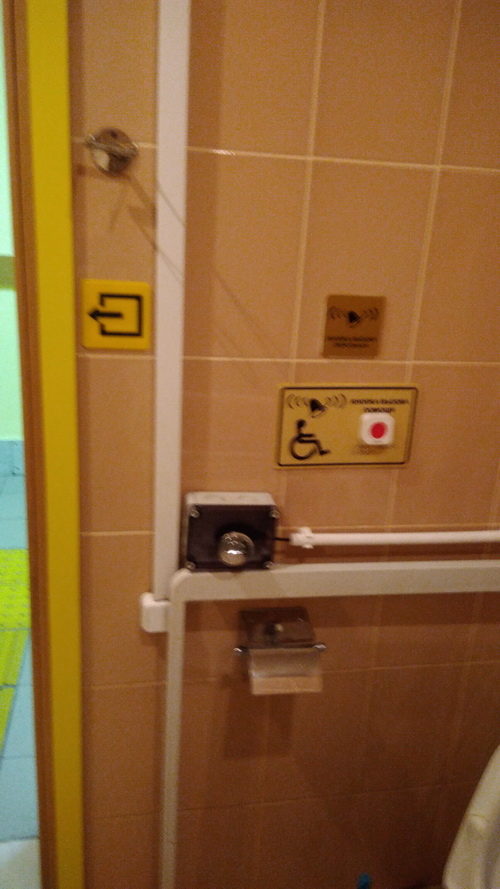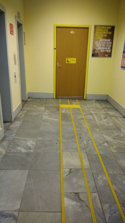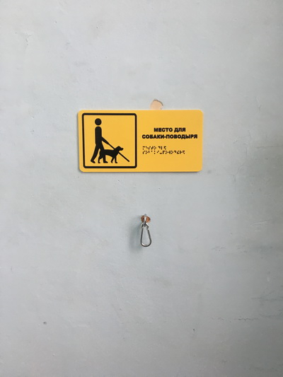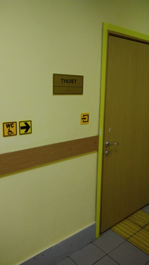 а) наличие при входе в объект вывески с названием организации, графиком работы, планом здания, выполненных рельефно-точечным шрифтом Брайля и на контрастном фоне, кнопка вызова персонала для сопровождения лиц с ограниченными возможностями;